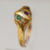 Ring aus 15 Kt Gelbgold mit drei Perlen und zwei Rubine.