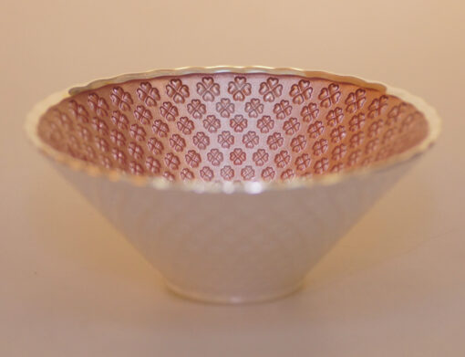 Schüssel aus Glas und Silber, mit Kleeblatt-Muster.